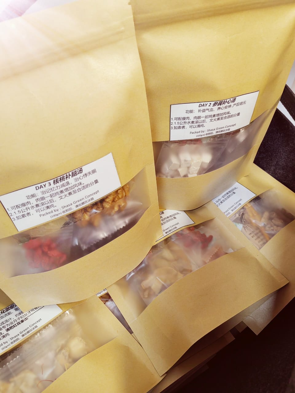 此配套为大马 / 新加坡顾客购买链接 ,其他海外国家顾客 , 请到以下链接购买 坐月子期间,女性的身体经历了分娩后的康复和恢复阶段。药膳汤在传统的月子文化中被认为是一种有益的饮食补充方式,可以帮助女性身体的恢复和滋补。 DAY 1 生化散瘀汤 功能: 促進瘀血流動、散寒止痛。 DAY 2 参苠补心汤 功能: 补益气血、养心安神 ,产后培元。 DAY 3 核桃补脑汤 功能:治记忆力减退,治心悸失眠 。 DAY 4 四枣润肠汤 功能: 润肠通便、改善便秘、温补不躁热。 DAY 5 田七行血汤 功能: 功能: 促进整体血液循环。 DAY 6 调经收宫汤 功能: 促进子宫收缩,行血补血。 DAY 7 黄精养血汤 功能: 滋补肝脾肾 ,补血。 DAY 8 阿胶补肾汤 功能: 大补阴血,补肾。 DAY 9 祛湿补腰汤 功能:祛风湿,强筋骨。 […]
